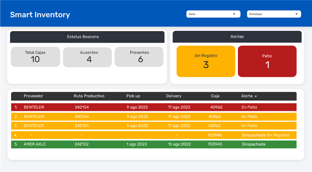 La plataforma web de Smart Inventory puede conectarse directamente a un repositorio de datos del cliente, del cual obtiene la información programada y la compara con el inventario actual para determinar cualquier incidente en la asignación de remolques.